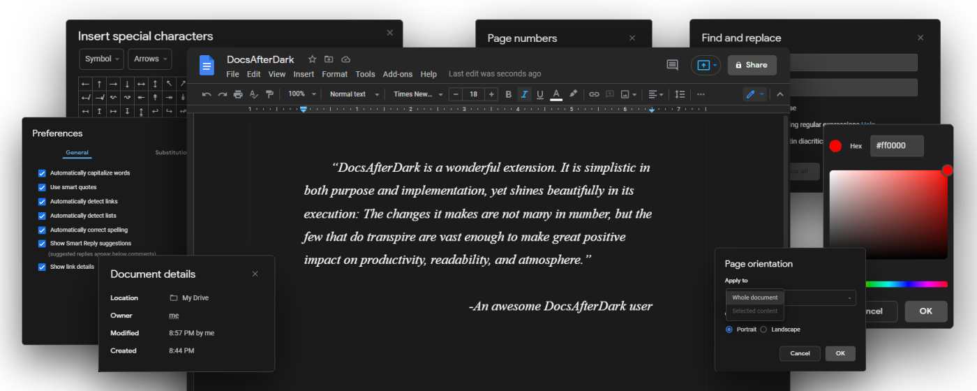 Modern, dark mode for Google Docs